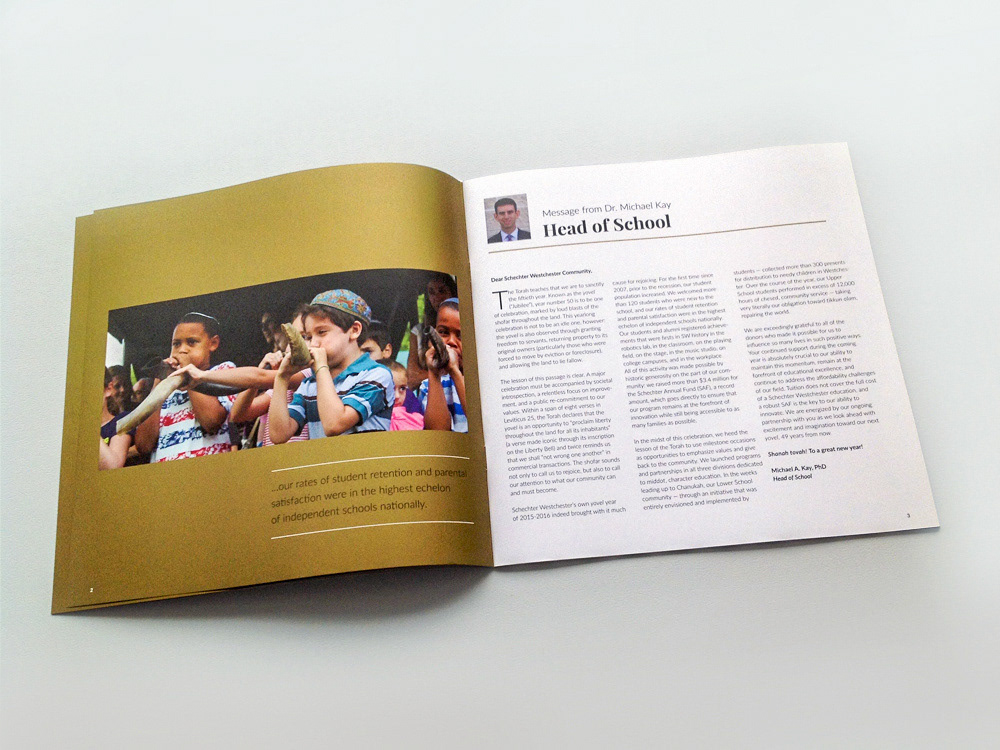 Design of annual reports for the Leffell School in New York (previously Solomon Schechter School of Westchester). Each year, I was asked to design colorful layouts with a large amount of photographs that would convey the vibrant atmosphere at the school.