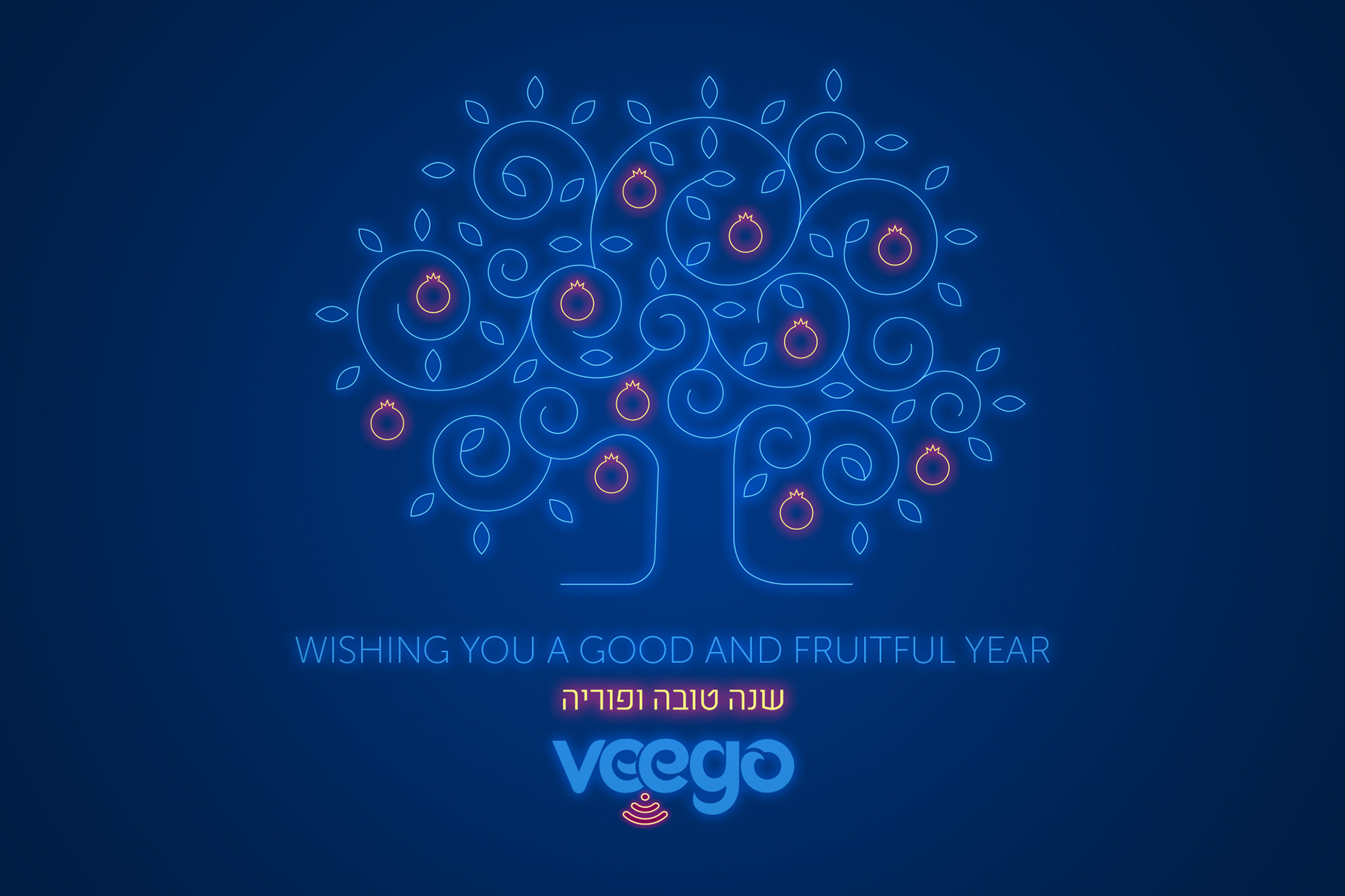 Illustration for Veego's greeting card for the Jewish New Year, designed to match existing company branding.